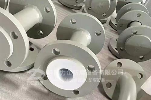 管襯鋼襯四氟管道是鋼管內部放入成本四氟管,經過兩邊翻邊擠壓工藝制作而成;四氟管與鋼管內部是不粘結的;
